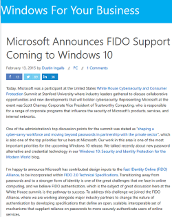 В феврале 15-го года M$ заявили, что в Windows 10 добавят FIDO. Правда, они имели в виду Fast IDentity Online — фичу, не имеющую никакого отношения к вот этому вот нашему Фидо, но так далеко статью прочли немногие. Большинство же прочитало исключительно заголовок и принялось, разумеется, громко бурлить по этому поводу и в интернетах вообще, и вконтактике.